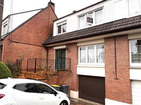Tourcoing proximité rue de Roncq maison individuelle briques avec garage et beau terrain (346m2 total) composée d’un salon séjour, cuisine,…