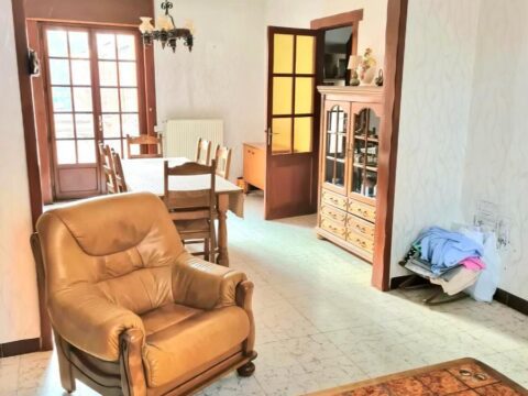 Maison loger semi individuelle à moderniser. Salon avec cheminée feu de bois (insert) de 30m2, cuisine équipée et espace repas…