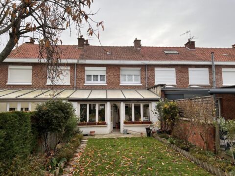 RONCHIN Maison d’une surface d’environ 85 m² comprenant un séjour de 28 ², une cuisine équipée ouverte, wc, 2 chambres…
